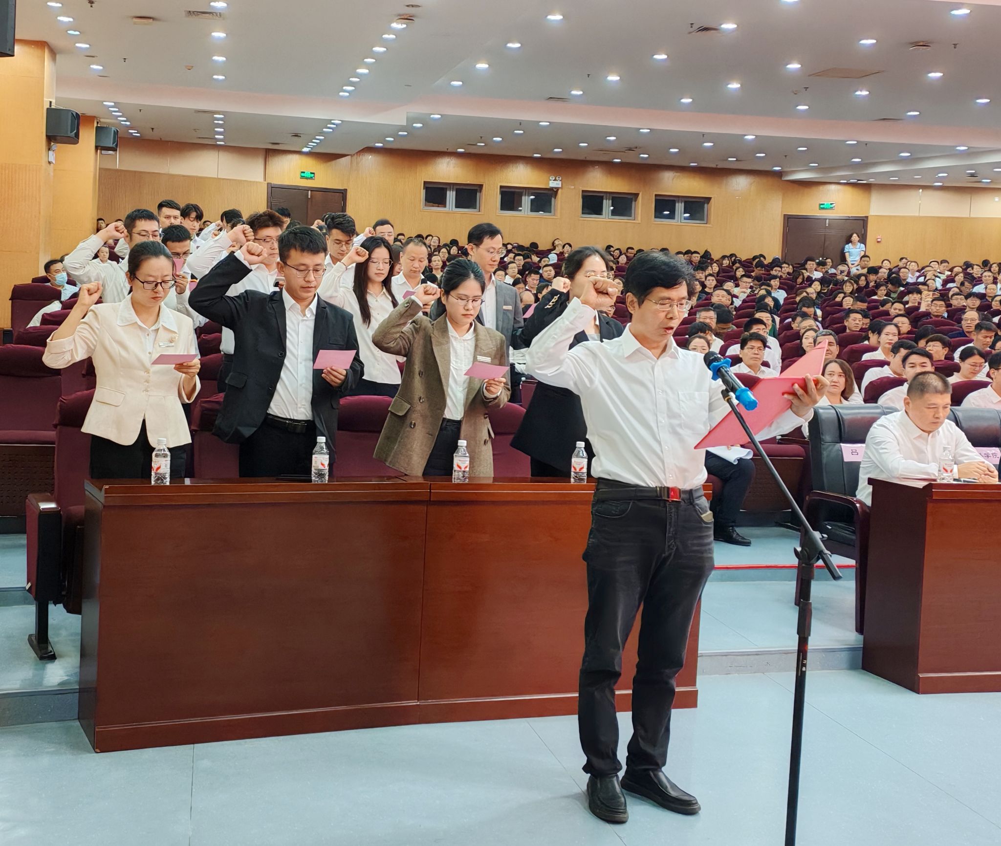 在陜西省青年突擊手、陜西省師德先進個人、數(shù)學與數(shù)據(jù)科學學院教授白云霄的領誓下,在場全體新入職教師莊嚴宣誓。