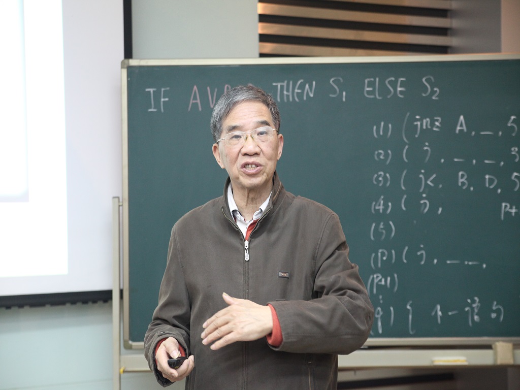 馮博琴教授隨后講授了“布爾表達(dá)式的語(yǔ)義分析”一課。他結(jié)合多媒體和黑板板書(shū),在關(guān)鍵點(diǎn)設(shè)置問(wèn)題和陷阱,通過(guò)課堂提問(wèn)等方式,在提高注意力的同時(shí)充分與參會(huì)教師和學(xué)生進(jìn)行互動(dòng)。此次報(bào)告內(nèi)容豐富,與會(huì)教師們受益頗多,為教師們今后如何講好每節(jié)課、提高課堂教學(xué)質(zhì)量起到了很好的示范學(xué)習(xí)作用。