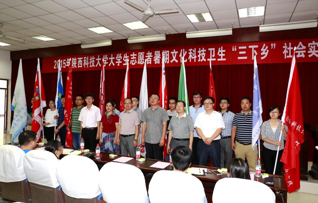 啟動儀式最后,與會領(lǐng)導(dǎo)為我?!叭锣l(xiāng)”社會實(shí)踐代表團(tuán)隊授旗。至此,我校2015年大學(xué)生志愿者暑期文化科技衛(wèi)生“三下鄉(xiāng)”社會實(shí)踐活動正式啟動。