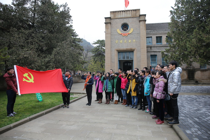 在楊家?guī)X革命舊址,全體青年教師在中共七大會址前,舉行了重溫入黨誓詞儀式。莊嚴的中央大禮堂、鮮艷的黨旗在蒼松翠柏的掩映之下顯得格外莊嚴,一群朝氣蓬勃的青年人面向黨旗又一次莊重地舉起右手:“我志愿加入中國共產(chǎn)黨,擁護黨的綱領,遵守黨的章程,履行黨員義務,執(zhí)行黨的決定,嚴守黨的紀律,保守黨的秘密,對黨忠誠,積極工作,為共產(chǎn)主義奮斗終身,隨時準備為黨和人民犧牲一切,永不叛黨。 ”在參觀毛澤東、周恩來、朱德等革命家的辦公室與住所前,一位青年教師說,“在物質(zhì)極度豐富、文化多元發(fā)展的今天,多少青年人按捺不住內(nèi)心的躁動,被享樂主義、奢靡之風左右頭腦而誤入歧途,看到毛主席在如此簡陋的辦公環(huán)境下卻寫出了《中國革命和中國共產(chǎn)黨》、《新民主主義論》等偉大論著,讓人深思。在我們?nèi)粘=虒W科研工作中,客觀條件不是最重要的,關(guān)鍵在于主觀能動性。陜西科技大學的教師發(fā)揚艱苦樸素的延安精神,用兩臺老虎鉗辦起五個工廠;在新校區(qū)建設發(fā)展的十年里,學校在異常困難的情況下,秉承‘勤儉辦學、艱苦奮斗’的‘老輕院精神’,實現(xiàn)了學校在歷史上最快速、最輝煌的跨越式發(fā)展,這一切都是對延安精神最好的堅持和傳承?!?br />