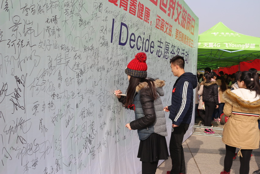本次活動的主題是“我要青春健康,遠離艾滋,美好青春我做主”,由后勤集團校醫(yī)院、校團委聯(lián)合主辦,學(xué)生會、新青年青春健康同伴社、益起走青年志愿者服務(wù)團共同協(xié)辦。校醫(yī)院醫(yī)務(wù)人員和大學(xué)生志愿者積極行動起來,通過“I Decide”志愿簽名活動、懸掛橫幅、散發(fā)宣傳小冊子及發(fā)放防艾宣傳警句和防艾知識的小禮品、提供咨詢等形式開展服務(wù)和宣傳工作,倡導(dǎo)同學(xué)們從自身做起,消除誤解和歧視,樹立正確的性道德、性觀念;預(yù)防艾滋、遠離艾滋;關(guān)愛艾滋病患者,共同行動,向“零”艾滋邁進。截止活動結(jié)束,主辦方共收集900多個志愿簽名,發(fā)放3000份宣傳冊、宣傳單頁,1000本筆記本,1000份各類小禮品及1500個安全套,總計參與活動人數(shù)達到3000多人。