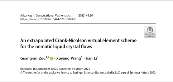 在向列型液晶材料模型的研究方面,利用虛擬元方法構(gòu)造了一個新的二階能量穩(wěn)定的數(shù)值格式,分析了數(shù)值格式的穩(wěn)定性和能量耗散性,嚴格證明了格式的收斂性,通過數(shù)值結(jié)果驗證了格式的有效性和穩(wěn)定性,進一步模擬了液晶系統(tǒng)中拓撲缺陷的產(chǎn)生以及對液晶相變的影響。相關(guān)成果發(fā)表在計算數(shù)學權(quán)威期刊Advances in Computational Mathematics上。河南大學鄒廣安副教授為第一作者,陜西科技大學李劍教授為通訊作者。